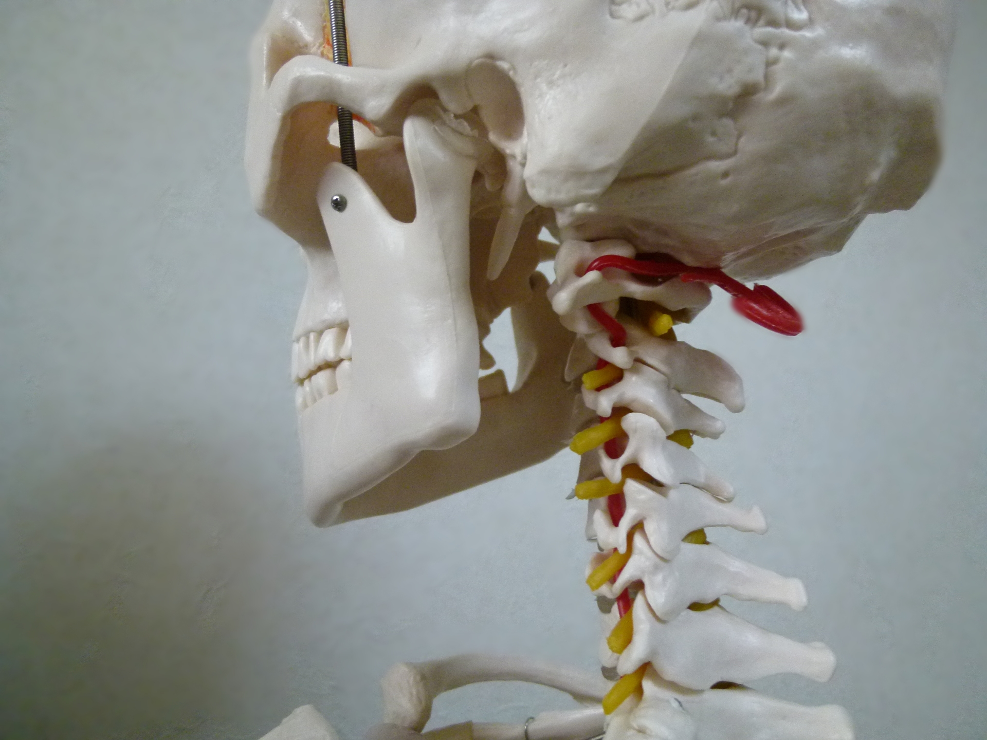 首の骨(頚椎)の配列やカーブの角度を確認します。 正常な前弯が消失している場合や、頚椎の変形・狭小化なども評価します。