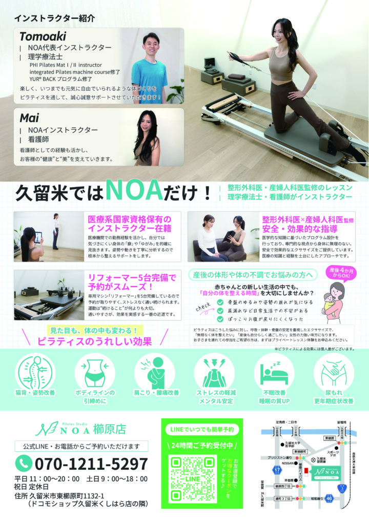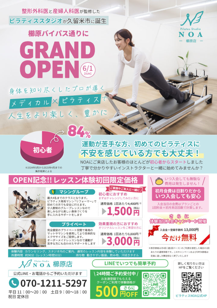 まつもと整形外科が監修したピラティススタジオ NOA櫛原店がOPENします!