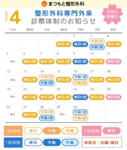 ※診療体制の日程については、専門外来のお知らせ・カレンダーをご確認ください